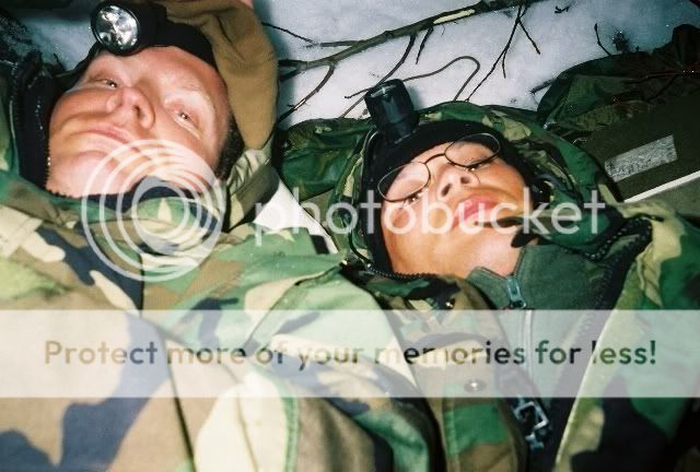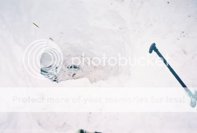 My buddy and I getting comfortable in our cave (12' under snow :wacko