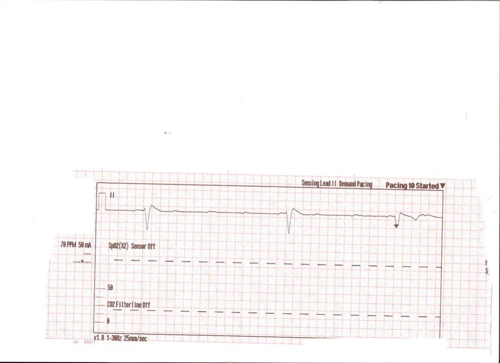 I pace at 70bpm/50ma and I feel I have got capture even though the QRS looks like "phantom QRS waves". Her b/p comes up and sats come up so treating the patient not the monitor. Still it appears that the underlying rhythm is marching through the paced QRS at where the absolute refractory period should be and this is impossible. My vitals signs increased and I checked the underlying rhythm several times during pacing and it was the same. Any thoughts? Normal paced rhythm has broader QRS and wide T waves, but I treated patient.
